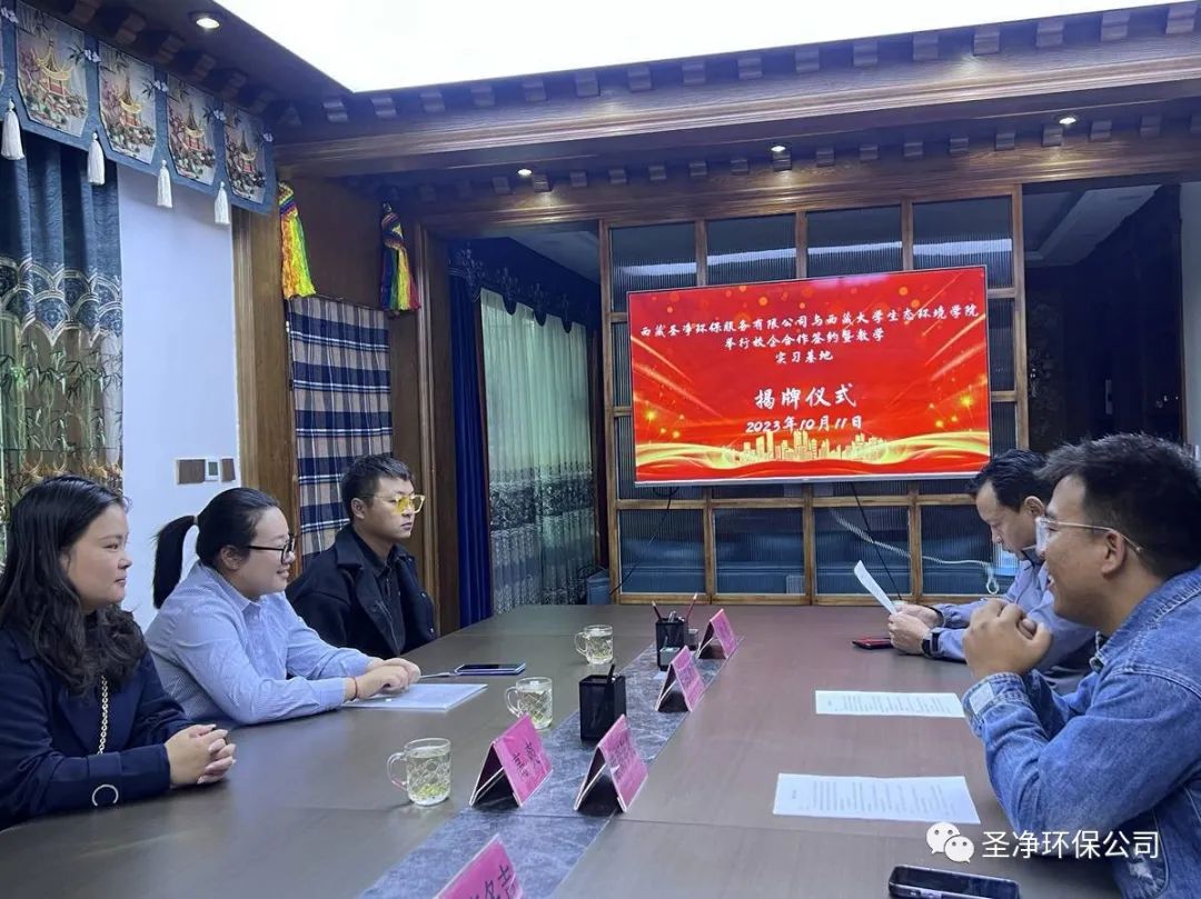 為進(jìn)一步加強(qiáng)學(xué)校與企業(yè)的合作,適應(yīng)產(chǎn)業(yè)發(fā)展的需求,共同做好畢業(yè)生的就業(yè)工作,并建立長(zhǎng)期的人力資源供需協(xié)作關(guān)系,優(yōu)化企業(yè)的人力資源管理,充分發(fā)揮各自優(yōu)勢(shì),促進(jìn)雙方事業(yè)的共同發(fā)展。2023年10月11日,西藏圣凈環(huán)保服務(wù)有限公司與西藏大學(xué)生態(tài)環(huán)境學(xué)院校企合作簽約暨教學(xué)實(shí)習(xí)基地揭牌儀式在我司會(huì)議室舉行。
