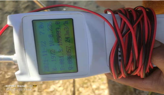 (處理完的水入河前現(xiàn)場圖和流速)